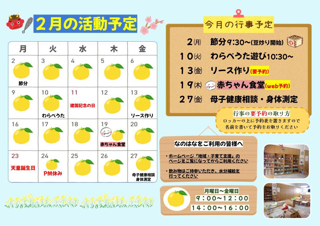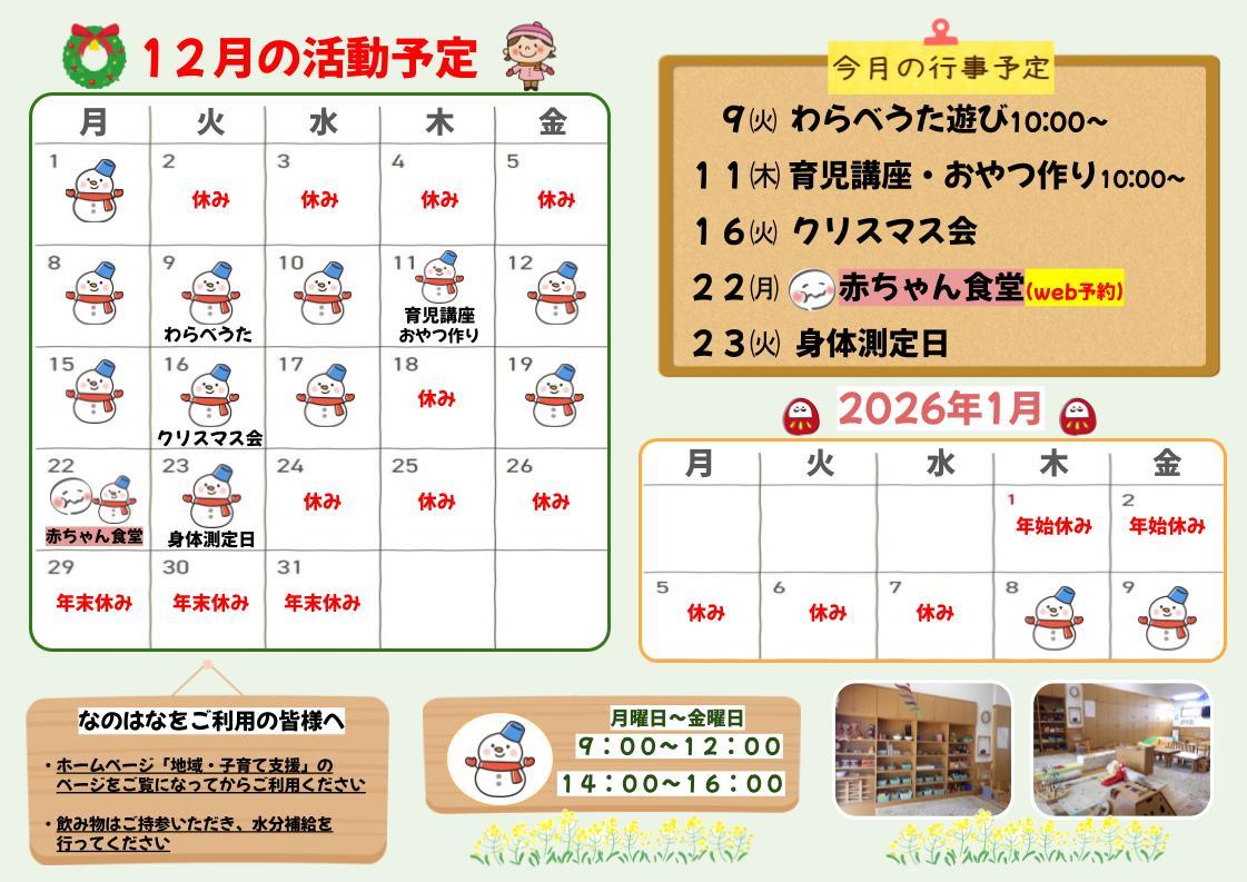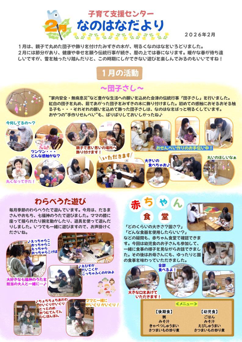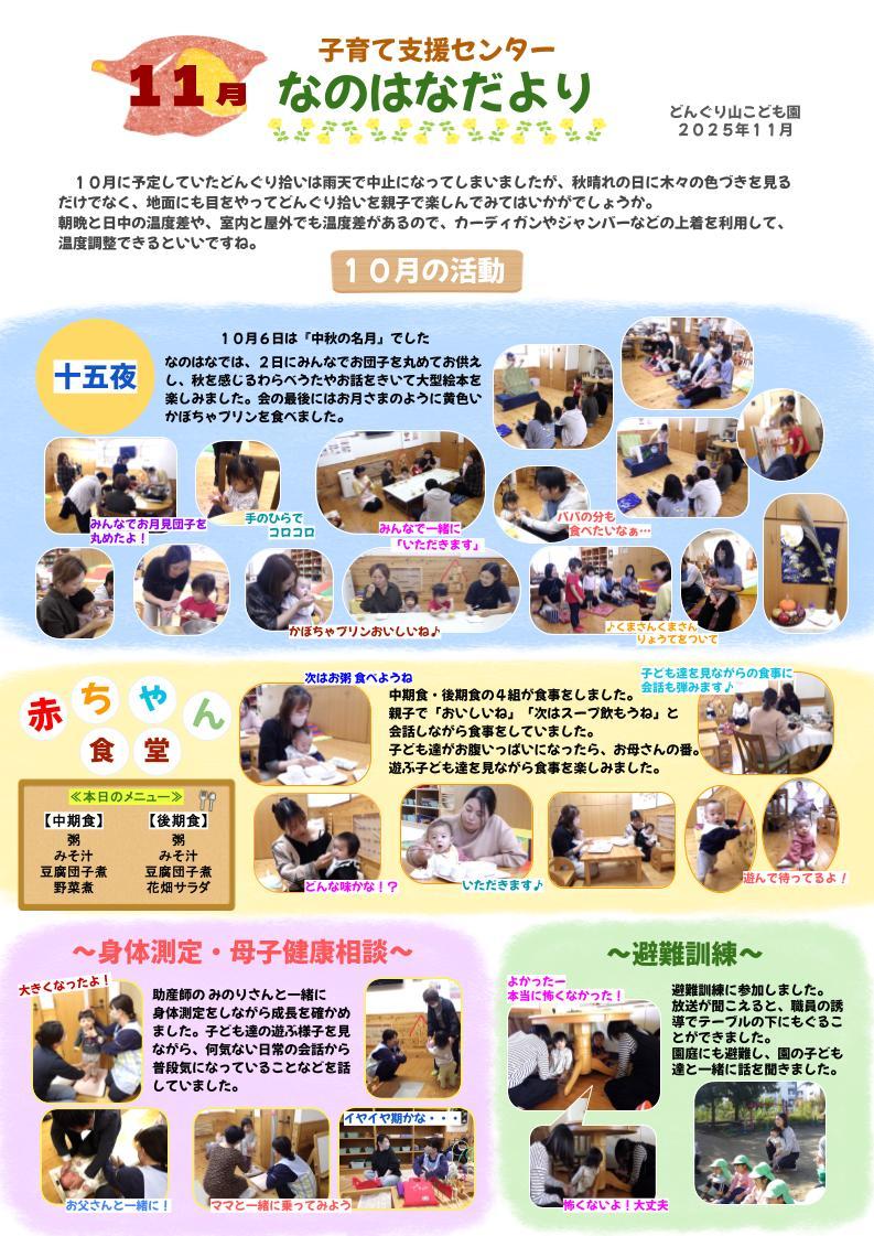 〇育児講座 〇園行事へのお誘い 〇給食体験 〇なのはなだより 〇絵本の貸し出し 〇手作り体験 〇子育てサークル支援 〇わらべうたあそび 〇身体測定 |
